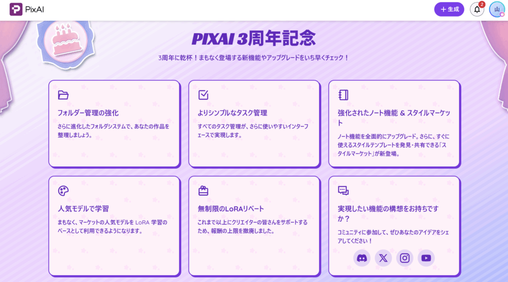 この3年間、PixAIは“アニメイラストに強い画像生成AI”として多くのユーザーに愛され、SNSや創作コミュニティを中心に着々と存在感を高めてきました。